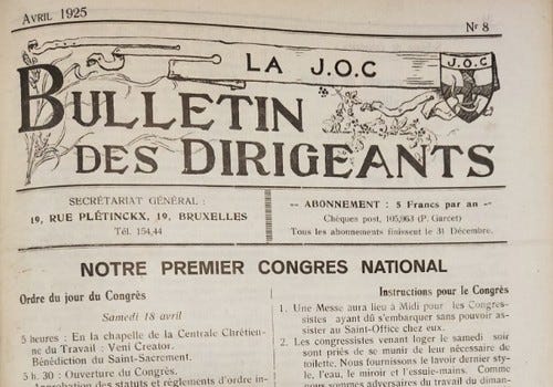 The biggest jocist anniversary of 2025 is indisputably the centennial of the official foundation of the Belgian Jeunesse Ouvrière Chrétienne or JOC in 1925, writes Stefan Gigacz.