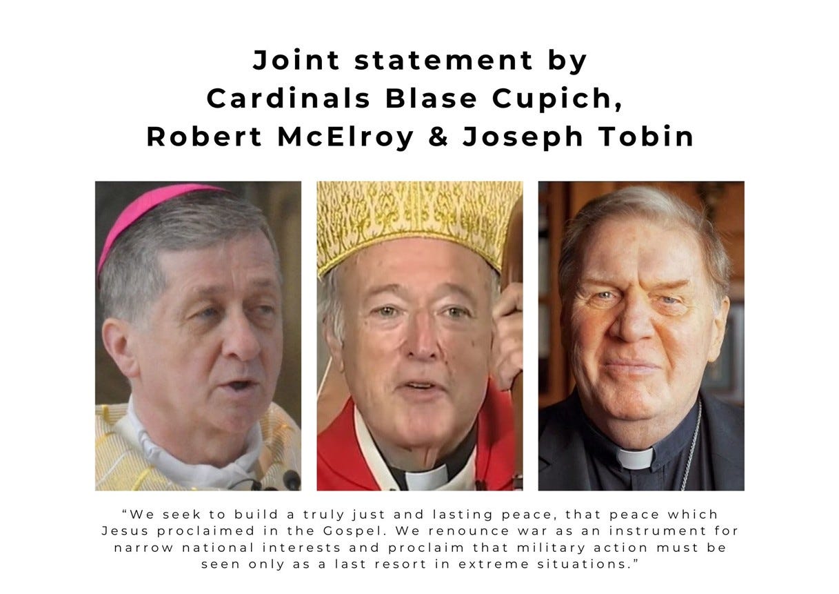 Three American cardinals, Blase J. Cupich of Chicago, Robert McElroy of Washington and Cardinal Joseph W. Tobin, C.Ss.R. of Newark have issued a strongly worded statement measuring U.S. foreign policy against the principles set forth by Pope Leo XIV.
